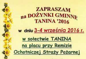 Pragnę serdecznie podziękować Wszystkim osobom zaangażowanym w organizację tegorocznych Dożynek Gminnych w Taninie. Szczególne słowa wdzięczności kieruję do Pani Sołtys, Rady Sołeckiej i Mieszkańców Sołectwa Tanina, na terenie którego odbyły się tegoroczne dożynki gminne. Dziękuję trójkom wszystkich sołectw za udział w ceremonii dożynkowej, mszy świętej oraz za złożone dary ziemi. Czytaj więcej „Podziękowania”