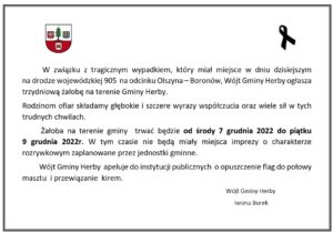 Informuje się, że w dniu 23 grudnia 2022 roku (piatek) Urząd Gminy Herby i GOPS w Herbach czynne będą do godziny 12:00. Kasa Urzędu Gminy w Herbach będzie czynna w dniach: