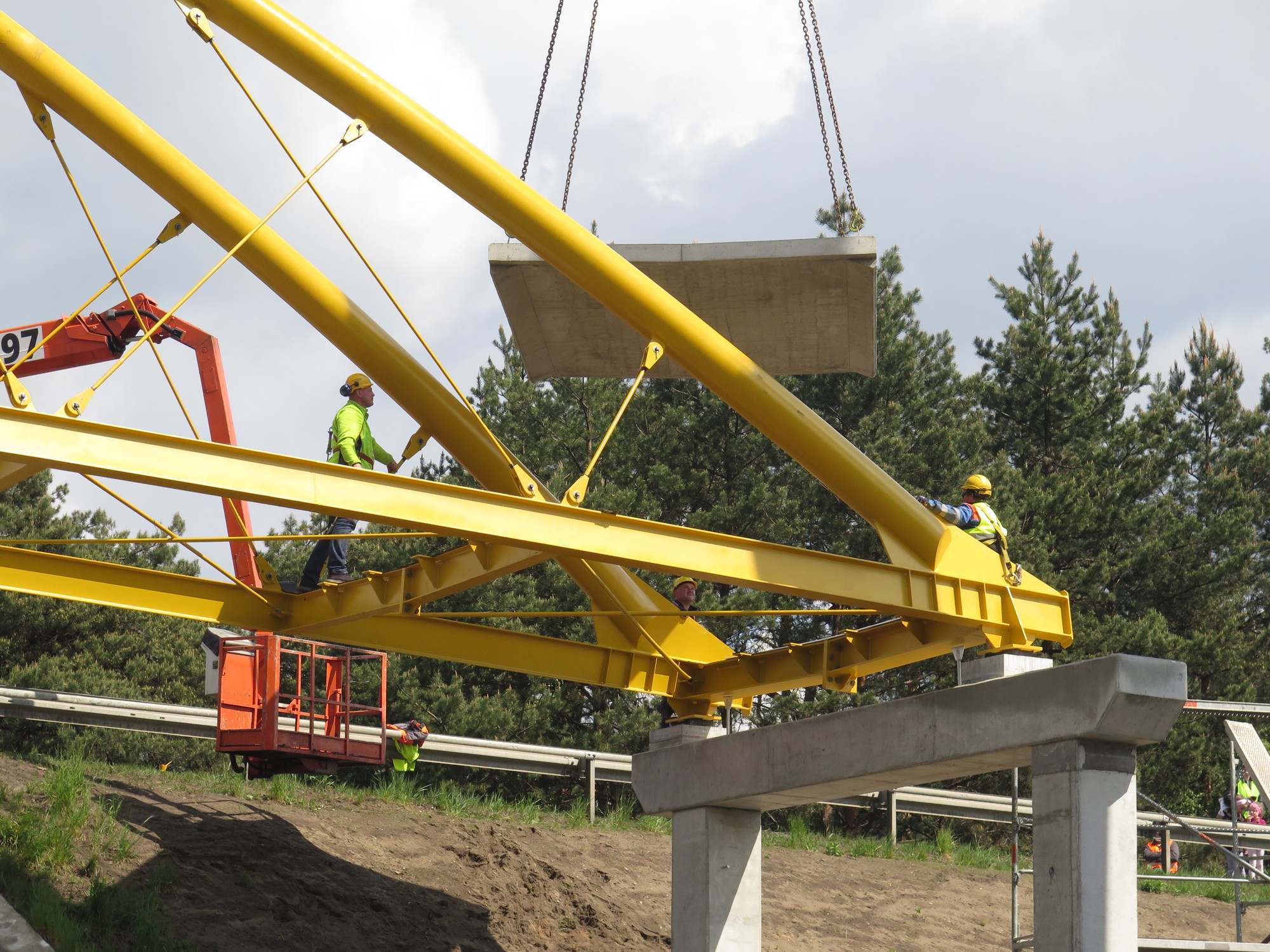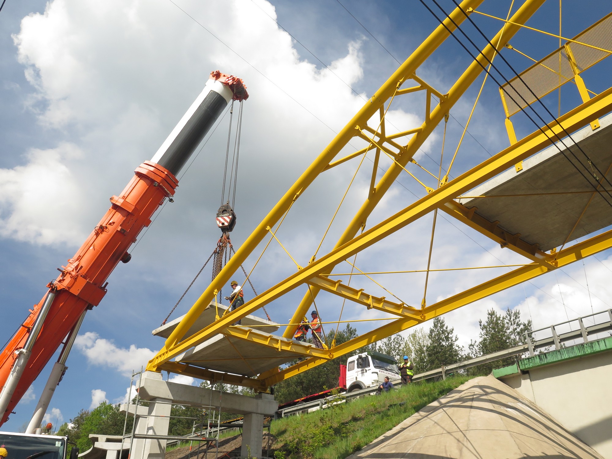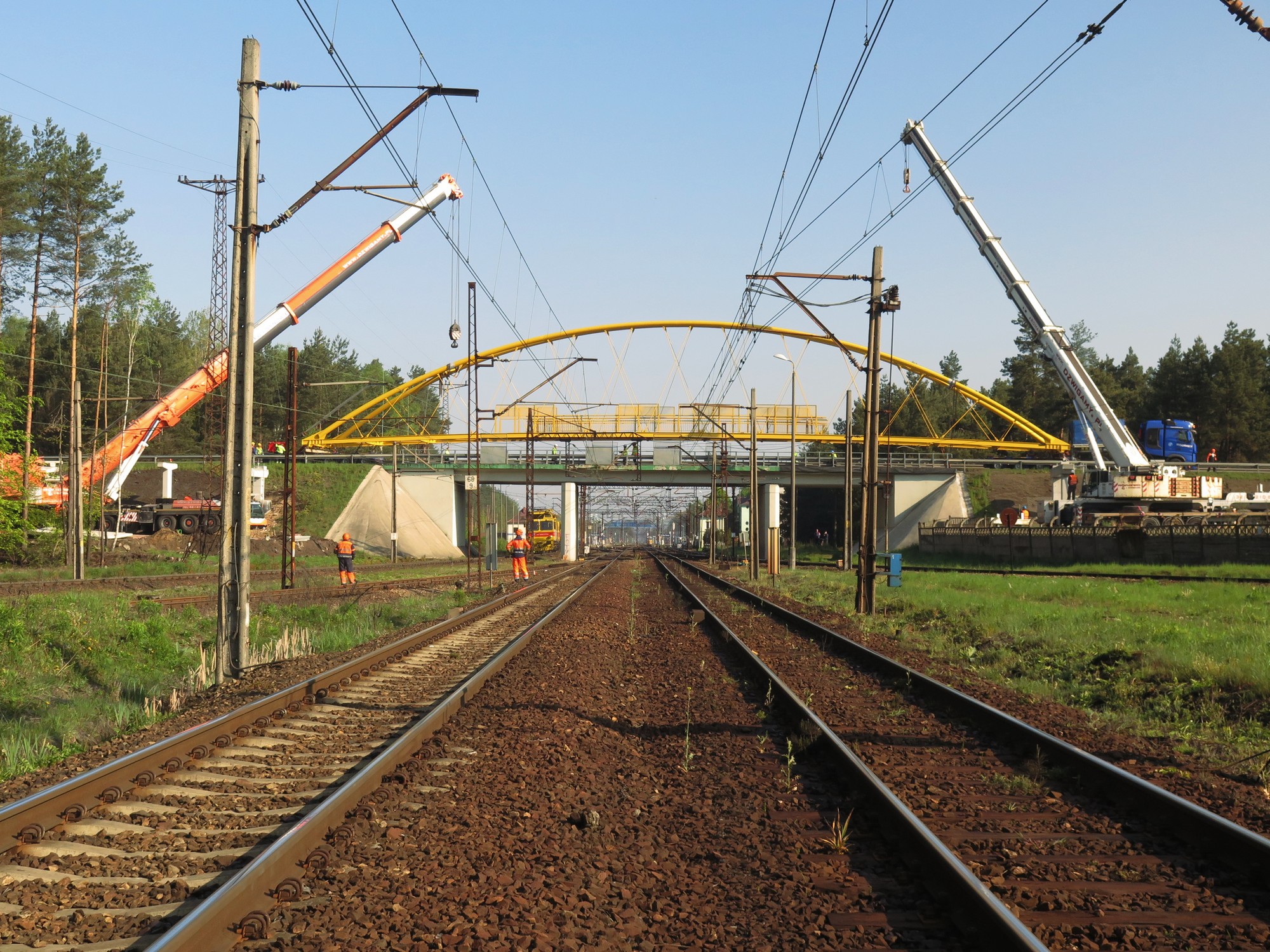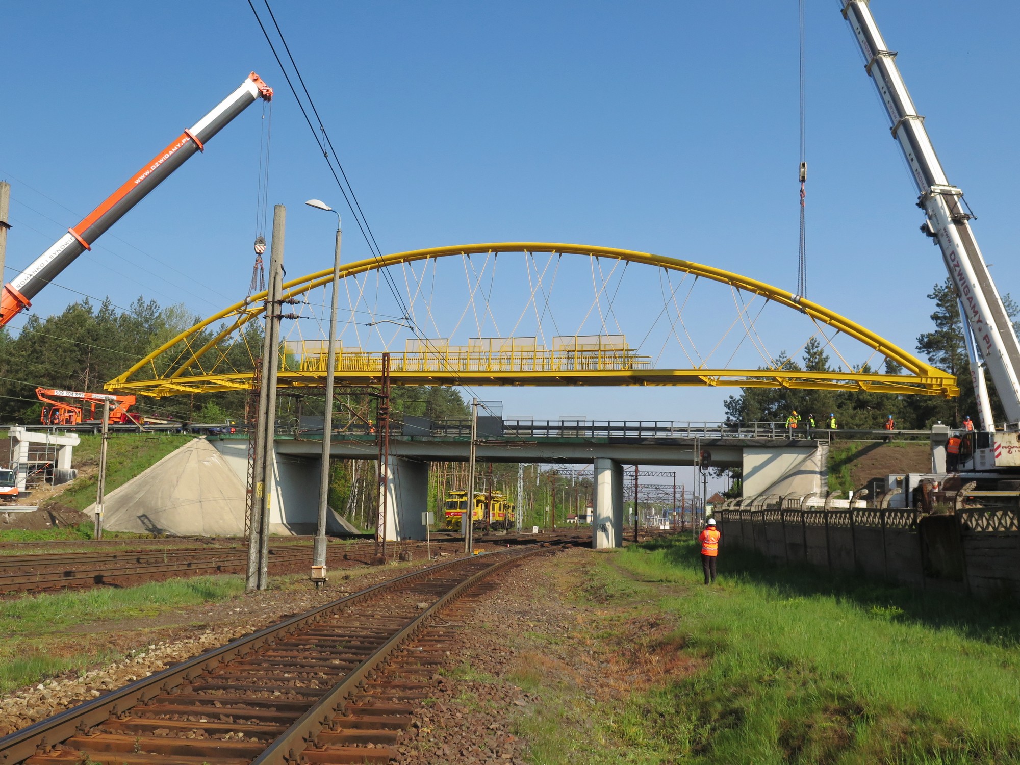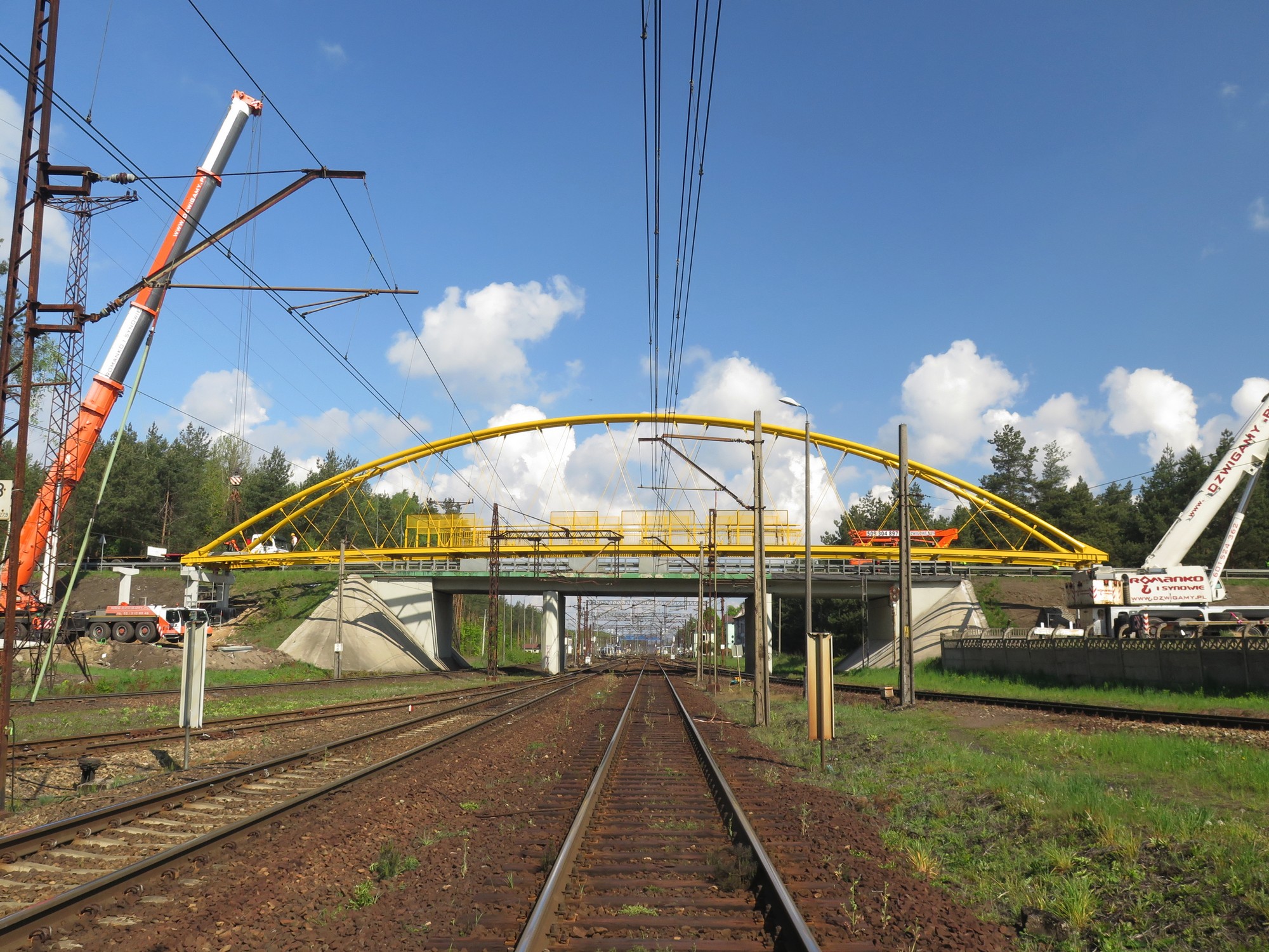 W dniu 11 maja 2019 r wykonawców drogi rowerowej  etapu I biegnącego wzdłuż DK 46 od ul. Dworcowej w Herbach do ul. Poprzecznej w Lisowie czekało bardzo trudne wyzwanie. Wykonawca musiał zamontować konstrukcję stalową kładki nad torami kolejowymi. Długość  całkowita obiektu mostowego  to  189 m, z czego sama konstrukcja stalowa kładki wynosi 56 m. Jak wielu z mieszkańców zauważyło aby wykonać montaż kładki trzeba było wyłączyć napięcie trakcji  kolejowej oraz zamknąć drogę DK 46, o czym wcześniej informowaliśmy. Wszystko szczęśliwie się zakończyło i  wykonawca może kontynuować realizację zadania.