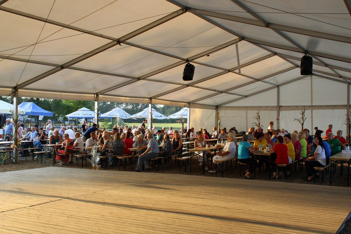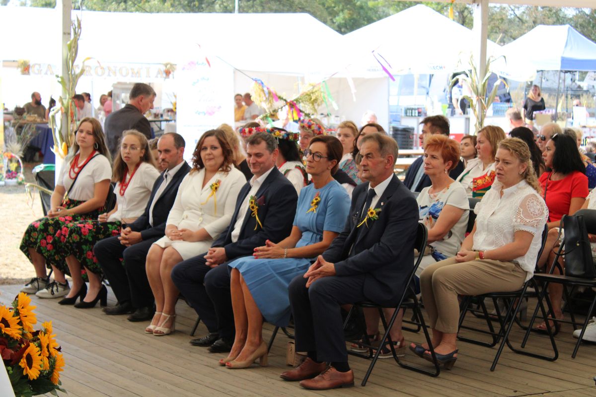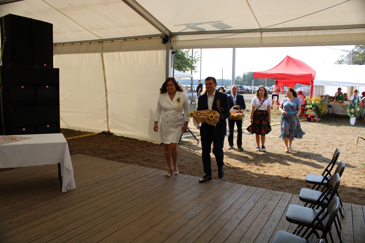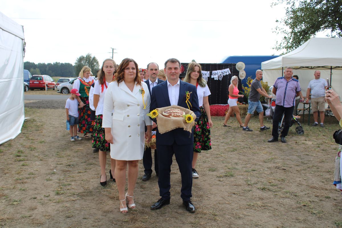 W dniu 8 września uroczystości rozpoczęły się przekazaniem chleba przez Starostów Dożynek Państwa Marlenę i Piotra Krysików na ręce Gospodarzy Dożynek pani Iwony Burek – Wójta Gminy oraz pana Krzysztofa Pilarza – Przewodniczącego Rady Gminy. Następnie Ksiądz Andrzej Marszałek – proboszcz z parafii pw. Św. Jacka w Borze Zapilskim wraz z Księdzem Kazimierzem Bartosikiem – proboszczem z parafii w Lisowie, odprawili uroczystą mszę polową dziękczynną w intencji rolników. Na mszę przybyli mieszkańcy gminy, zaproszeni goście, trójki z sołectw wraz z koszami plonów oraz poczty sztandarowe z jednostek OSP. Po mszy głos zabrała Wójt Gminy, która powitała wszystkich uczestników uroczystości, podziękowała rolnikom za ich trud i ciężką pracę oraz życzyła wszystkim udanego świętowania. Następnie Gospodarze Dożynek częstowali przybyłych poświęconym chlebem. Po części oficjalnej rozpoczęły się występy grup działających przy Gminnym Ośrodku Kultury w Herbach. Zebrani mogli posłuchać koncertu Jakuba Sarny, obejrzeć występ kabaretu Czwarta Fala, a na zakończenie uroczystości pobawić się przy dźwiękach muzyki Zespołu Redlin. Zaplecze gastronomiczne w tym roku zapewniły KGW z terenu gminy tj. z Lisowa, Olszyny i Łebek oraz Agroturystyka „Bajkowa Kraina”, za co serdecznie dziękujemy. Dodatkowo uczestnicy dożynek mogli się częstować tradycyjnym kołaczem.