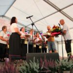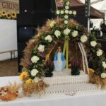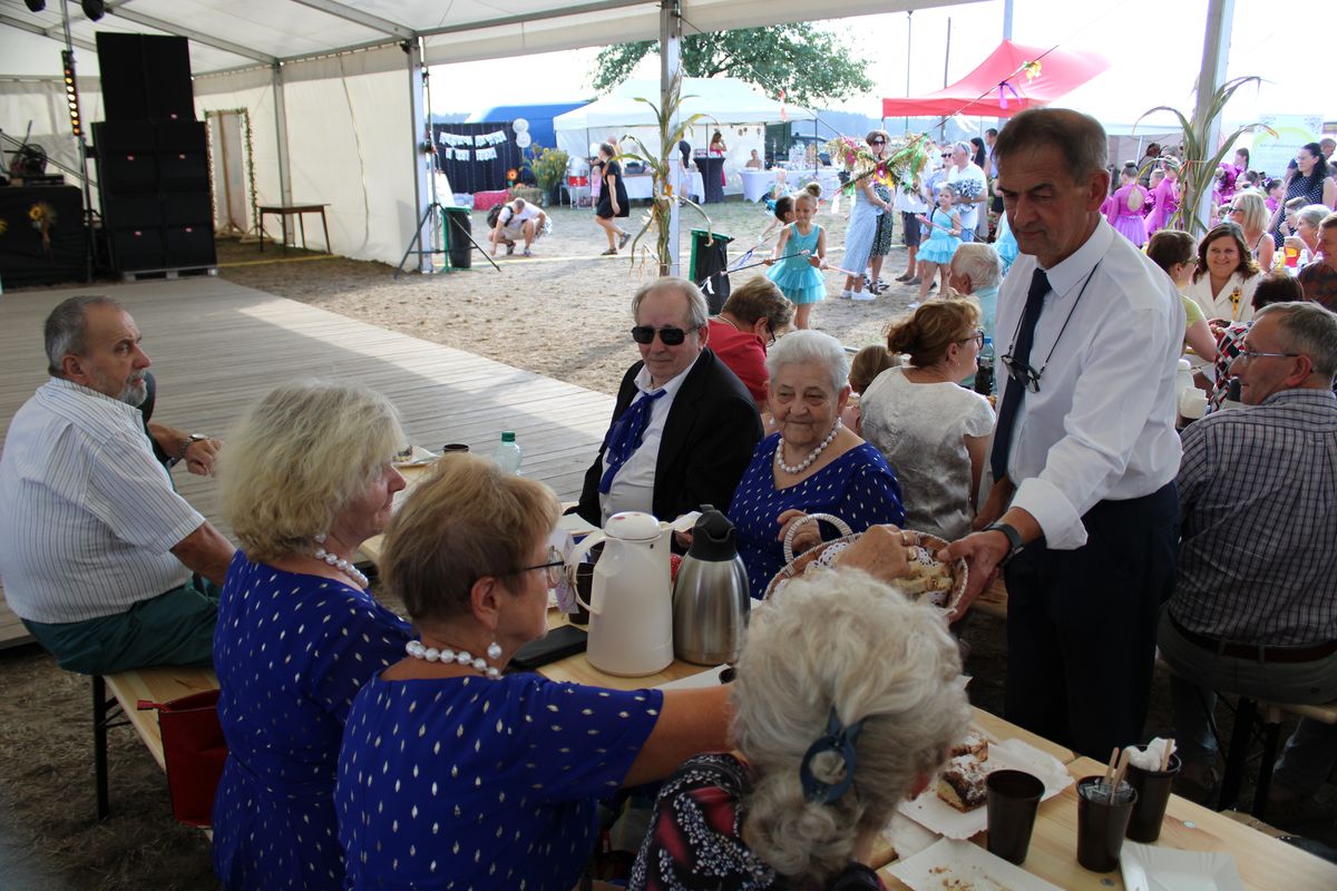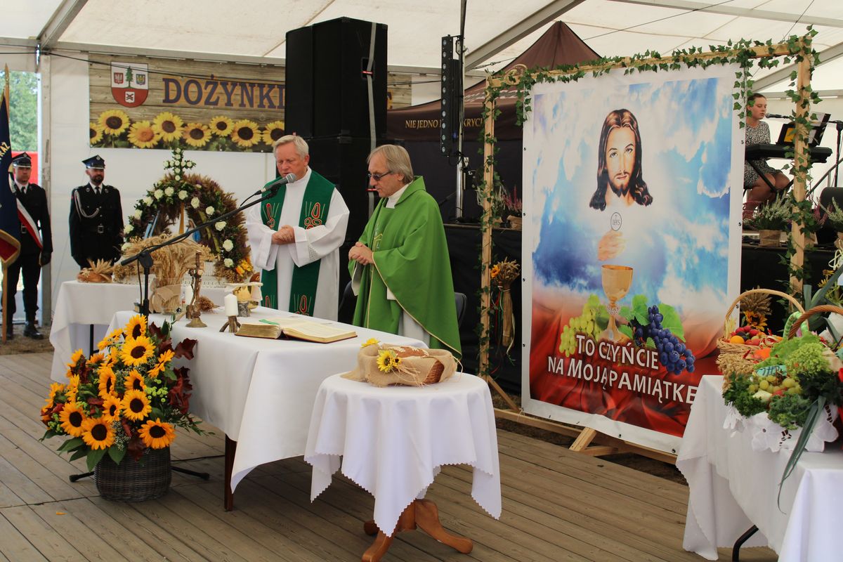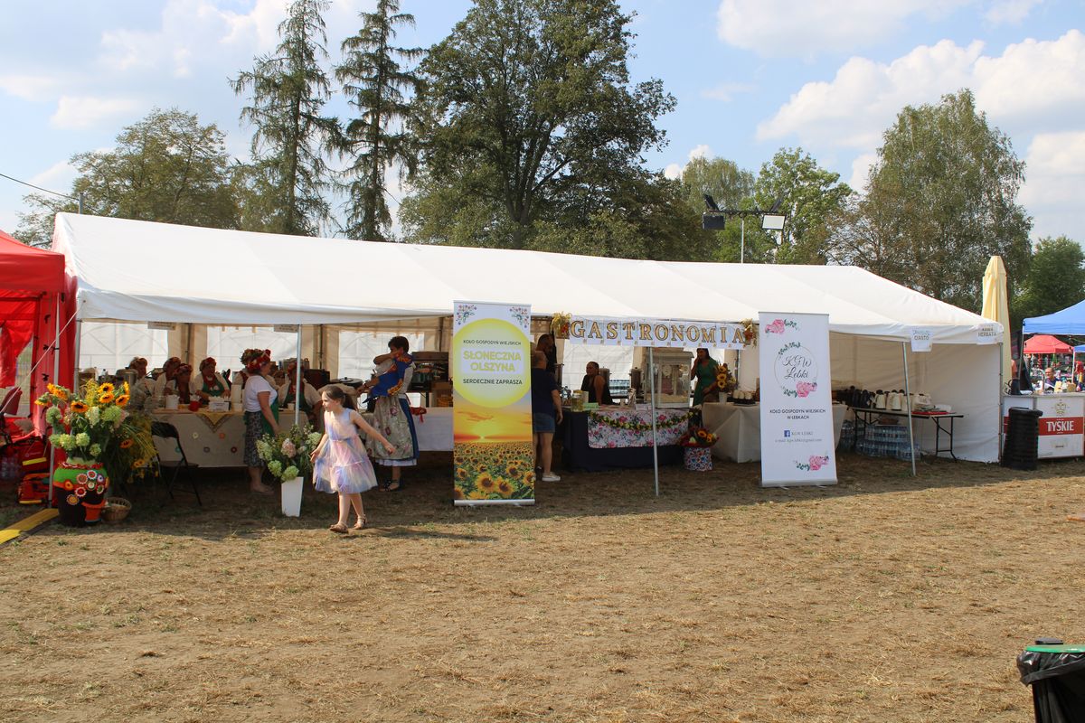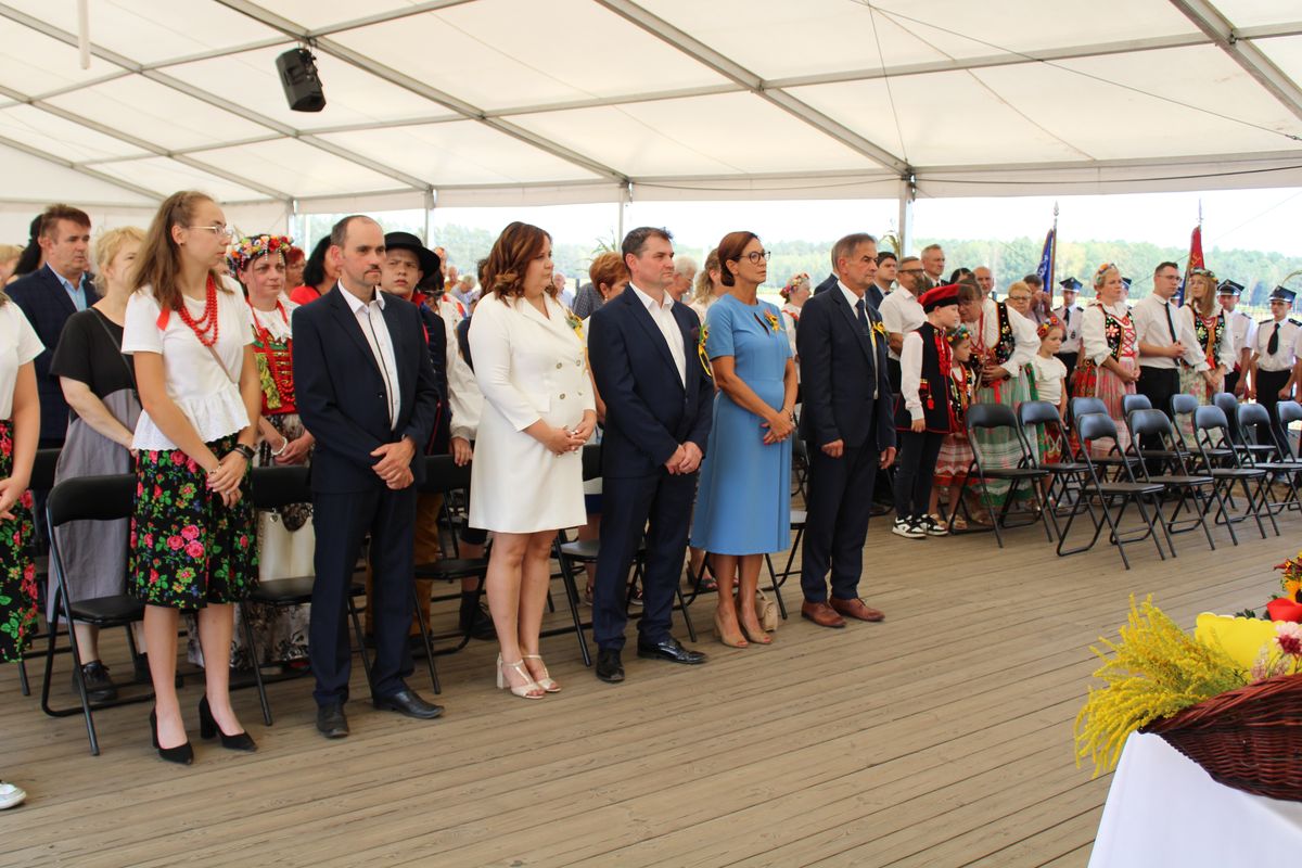 W dniu 8 września uroczystości rozpoczęły się przekazaniem chleba przez Starostów Dożynek Państwa Marlenę i Piotra Krysików na ręce Gospodarzy Dożynek pani Iwony Burek – Wójta Gminy oraz pana Krzysztofa Pilarza – Przewodniczącego Rady Gminy. Następnie Ksiądz Andrzej Marszałek – proboszcz z parafii pw. Św. Jacka w Borze Zapilskim wraz z Księdzem Kazimierzem Bartosikiem – proboszczem z parafii w Lisowie, odprawili uroczystą mszę polową dziękczynną w intencji rolników. Na mszę przybyli mieszkańcy gminy, zaproszeni goście, trójki z sołectw wraz z koszami plonów oraz poczty sztandarowe z jednostek OSP. Po mszy głos zabrała Wójt Gminy, która powitała wszystkich uczestników uroczystości, podziękowała rolnikom za ich trud i ciężką pracę oraz życzyła wszystkim udanego świętowania. Następnie Gospodarze Dożynek częstowali przybyłych poświęconym chlebem. Po części oficjalnej rozpoczęły się występy grup działających przy Gminnym Ośrodku Kultury w Herbach. Zebrani mogli posłuchać koncertu Jakuba Sarny, obejrzeć występ kabaretu Czwarta Fala, a na zakończenie uroczystości pobawić się przy dźwiękach muzyki Zespołu Redlin. Zaplecze gastronomiczne w tym roku zapewniły KGW z terenu gminy tj. z Lisowa, Olszyny i Łebek oraz Agroturystyka „Bajkowa Kraina”, za co serdecznie dziękujemy. Dodatkowo uczestnicy dożynek mogli się częstować tradycyjnym kołaczem.