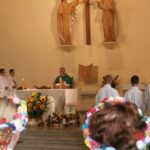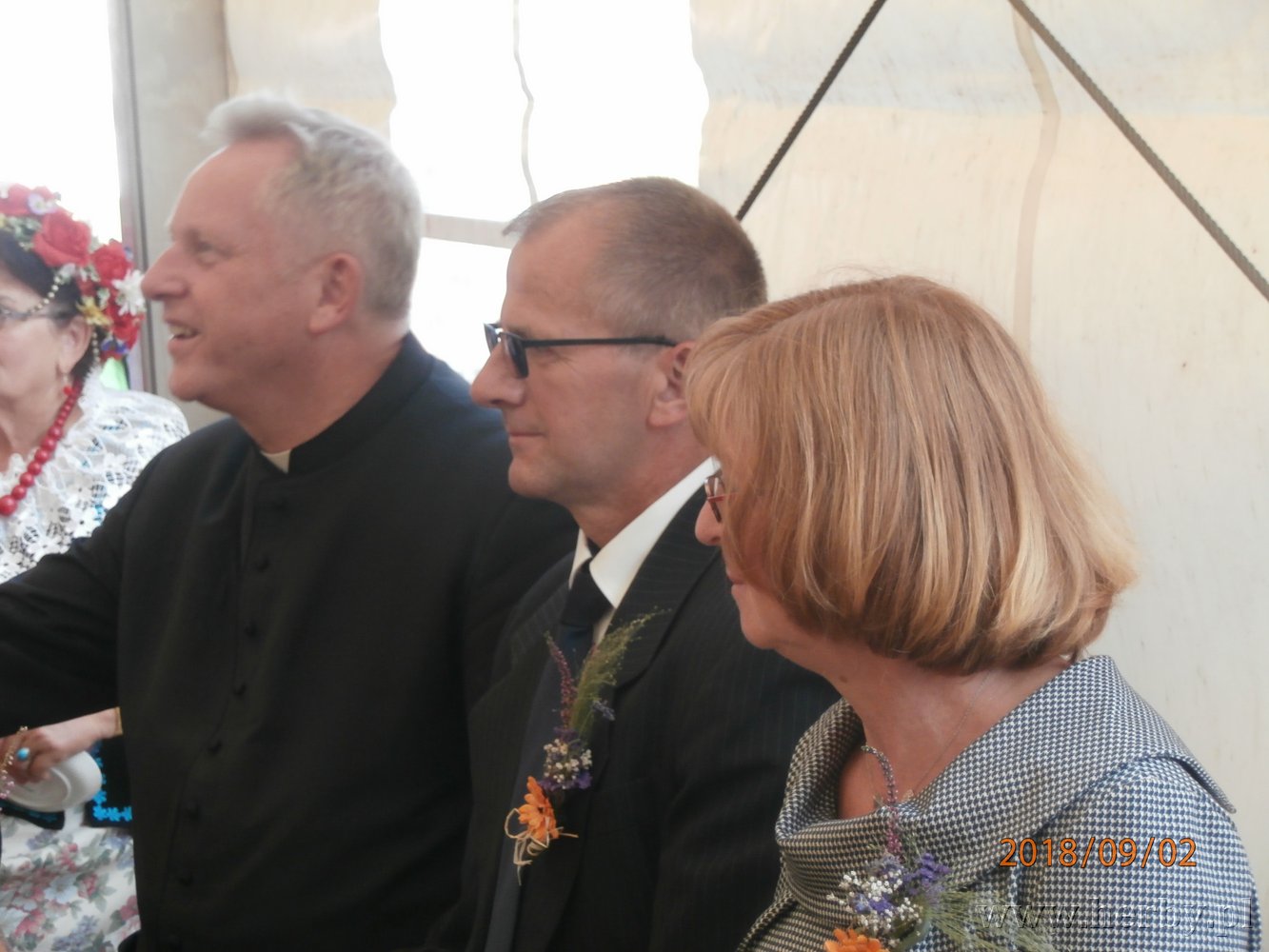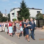 Po przekazaniu chleba wszyscy zebrani uformowali barwny korowód dożynkowy, który udał się do miejscowego kościoła gdzie została odprawiona uroczysta msza dziękczynna. W korowodzie z Gospodarzami Dożynek i Starostami Dożynek na czele, szły przepięknie ubrane w ludowe stroje trójki z poszczególnych sołectw, które niosły pełne kosze darów ziemi, następnie członkowie zespołów Lisowianki i Złota Jesień, Radni Gminy i Powiatu, zaproszeni goście oraz poczty sztandarowe jednostek ochotniczych straży pożarnych, liczni rolnicy i mieszkańcy gminy. W pięknie udekorowanym przez mieszkańców Sołectwa Chwostek kościele Gospodyni Dożynek złożyła chleb na ołtarzu, a przedstawiciele wszystkich sołectw w gminie kosze z darami przed ołtarzem. Mszę świętą odprawił oraz przepiękną homilię wygłosił Proboszcz Parafii w Lisowie ks. Kazimierz Bartosik. Po powrocie korowodu z kościoła Wójt powitała wszystkich przybyłych i zaprosiła do wspólnego świętowania. Tradycyjnie Gospodarze Dożynek poczęstowali wszystkich obecnych poświęconym chlebem. Pogoda w tym dniu bardzo nam dopisała co przyczyniło się do licznego udziału mieszkańców w imprezie. Wszyscy zebrani mogli częstować się dożynkowym kołaczem oraz kawą i herbatą. Część artystyczną rozpoczęły zespoły Lisowianki, Złota Jesień, a następnie wystąpiły dzieci z Zespołów Szkolno-Przedszkolnych w gminie. Dzieci zaprezentowały przebogaty repertuar. Od własnych aranżacji popularnych przebojów po występ w gwarze śląskiej oraz występy najmłodszych w pięknym tańcu. Bardzo podobał się występ grupy tanecznej Grand Seven oraz orkiestry dętej ze Świbia „Blaskapelle” a także zespołu „Bajery”, który porwał znaczą część zebranych do tańca. Dla urozmaicenia części artystycznej wystąpili karatecy z Herbowskiego klubu Oyama Karate. Na zakończenie uroczystości dożynkowych już przy zapadającym zmroku odbył się pokaz taneczny ognia w wykonaniu „Indigo Show Fireshow”. Tak udana uroczystość nie odbyłaby się gdyby nie zaangażowanie wielu osób. Szczególne podziękowania kieruję do p. Sołtys, Rady Sołeckiej i mieszkańców Sołectwa Lisów za przepiękne przygotowanie wystroju sołectwa, mieszkańcom Sołectwa Chwostek za wspaniałe udekorowanie kościoła oraz Dyrekcji i pracownikom Szkoły. Wszystkim, którzy uczestniczyli w uroczystościach składam serdeczne podziękowania za obecność.