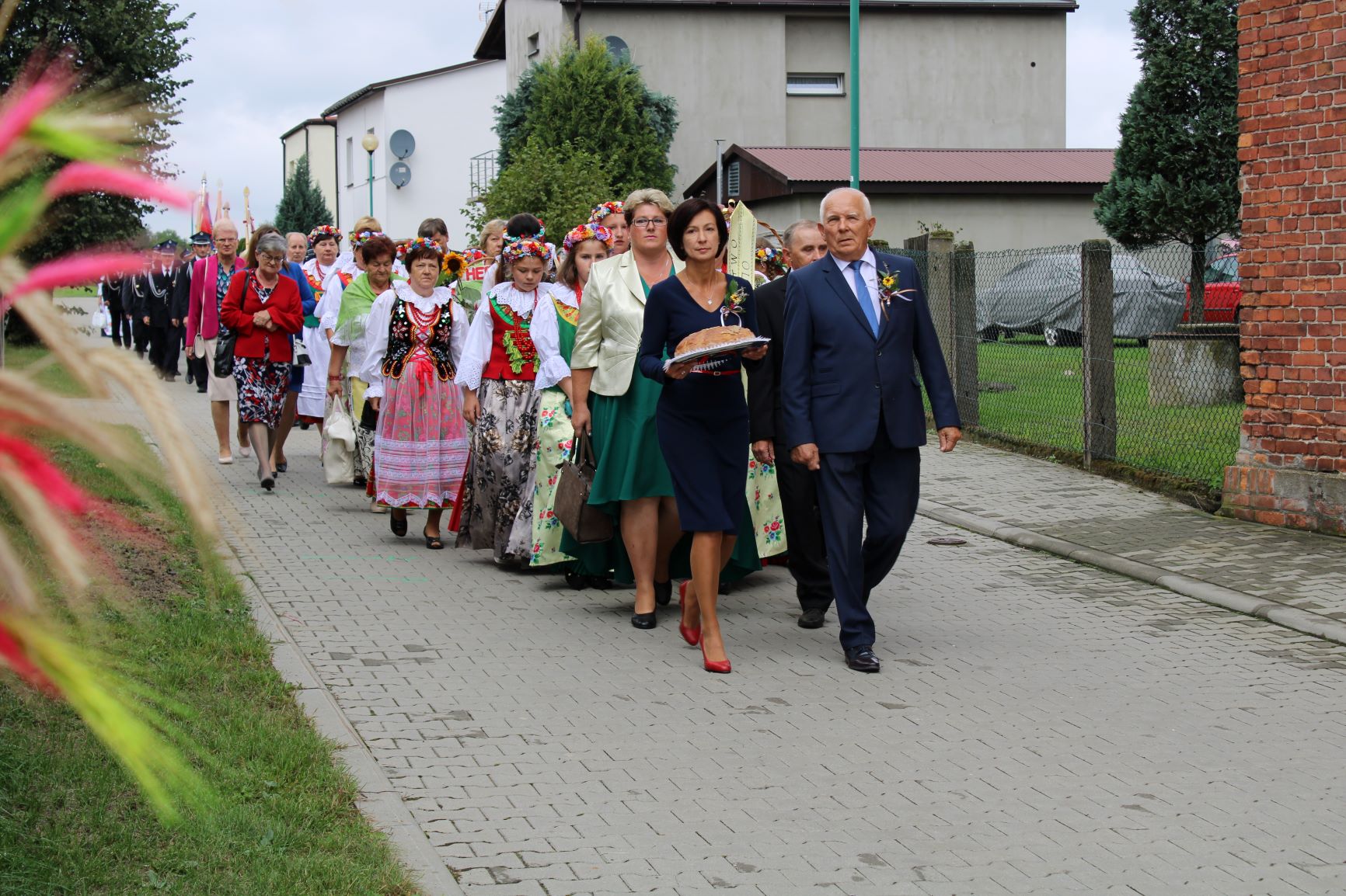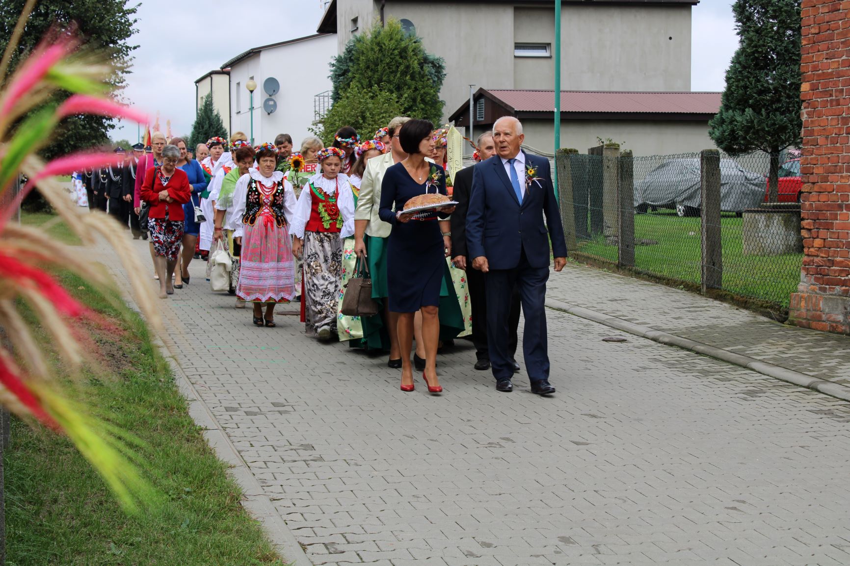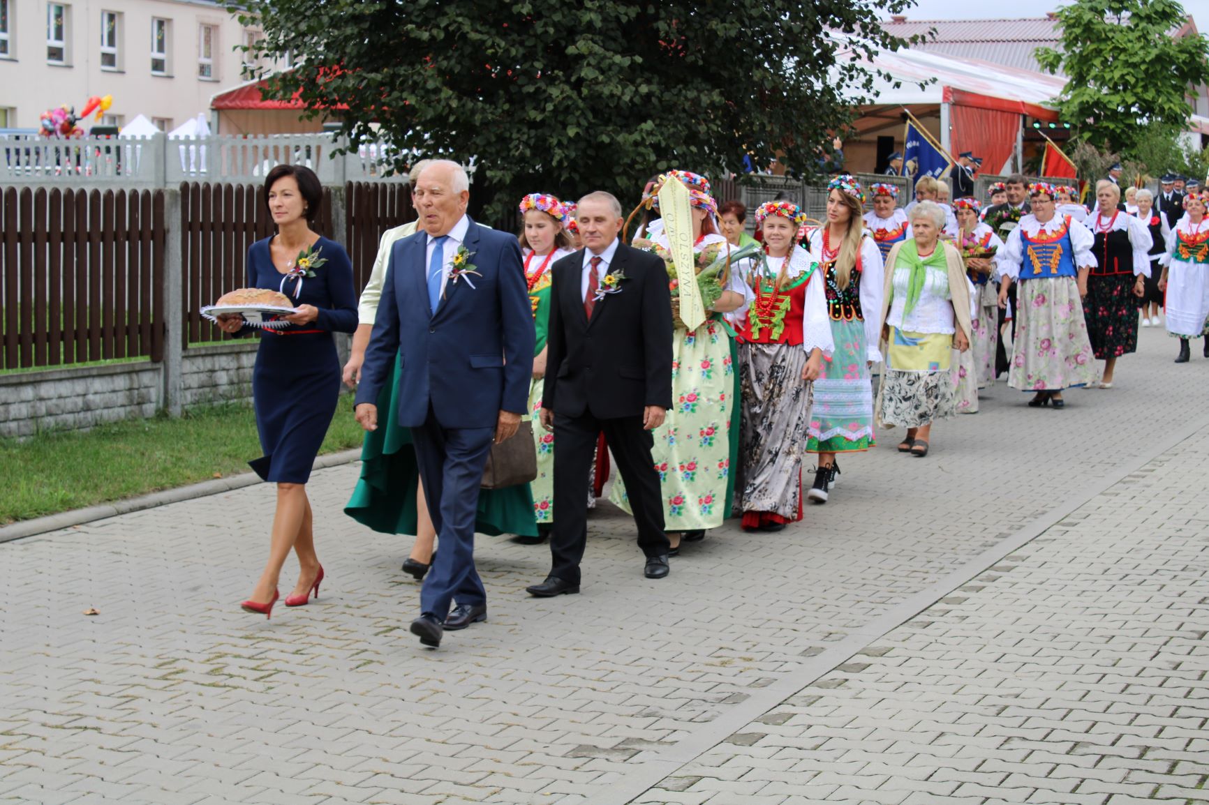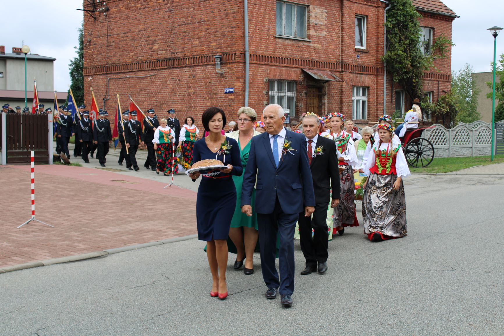 W dniu 8  września  uroczystości rozpoczęły się przekazaniem chleba przez Starostów Dożynek w osobach Elżbiety i Lucjana Machoń  na ręce gospodarzy  dożynek Pani Iwony Burek – Wójt Gminy  i p. Józefa Kozielskiego Przewodniczącego Rady Gminy. Barwny korowód na czele z Gospodarzami,  Starostami, pocztami sztandarowymi jednostek ochotniczych straży pożarnych, trójkami sołeckimi i mieszkańcami gminy udał się na Mszę Świętą do kościoła parafialnego w Olszynie, którą odprawili ks. Jarosław Wiśniewski proboszcz parafii w Olszynie i ks. Kazimierz Bartosik -proboszcz parafii w Lisowie.  Po powrocie z kościoła głos zabrała Wójt Gminy, która powitała zaproszonych gości, podziękowała  rolnikom za ich trud i ciężką pracę, życzyła wszystkim radosnego świętowania oraz podziękowała za liczny udział. Tradycyjnie gospodarze Dożynek podzielili poświęcony chleb dożynkowy i poczęstowali przybyłych na dożynki gości i mieszkańców. Następnie rozpoczął się blok artystyczny w którym wystąpiły zespoły „Złota Jesień” i „Lisowianki”; dzieci z Zespołu Szkolno – Przedszkolnego w Olszynie, tancerki z zespołu Grand Seven, mażoretki  „Copacabana” z Ciasnej, orkiestra dęta „Blaskapelle” z Świbia oraz cygański zespół „Vanessa & Sorba” Podsumowaniem uroczystości dożynkowych był  pokaz pirotechniczny, który wzbudził wielkie zainteresowanie uczestników  dożynek gminnych. Wszystkim, którzy przyczynili się do organizacji tak udanej imprezy w szczególności mieszkańcom Sołectwa Olszyna składam serdeczne podziękowania.