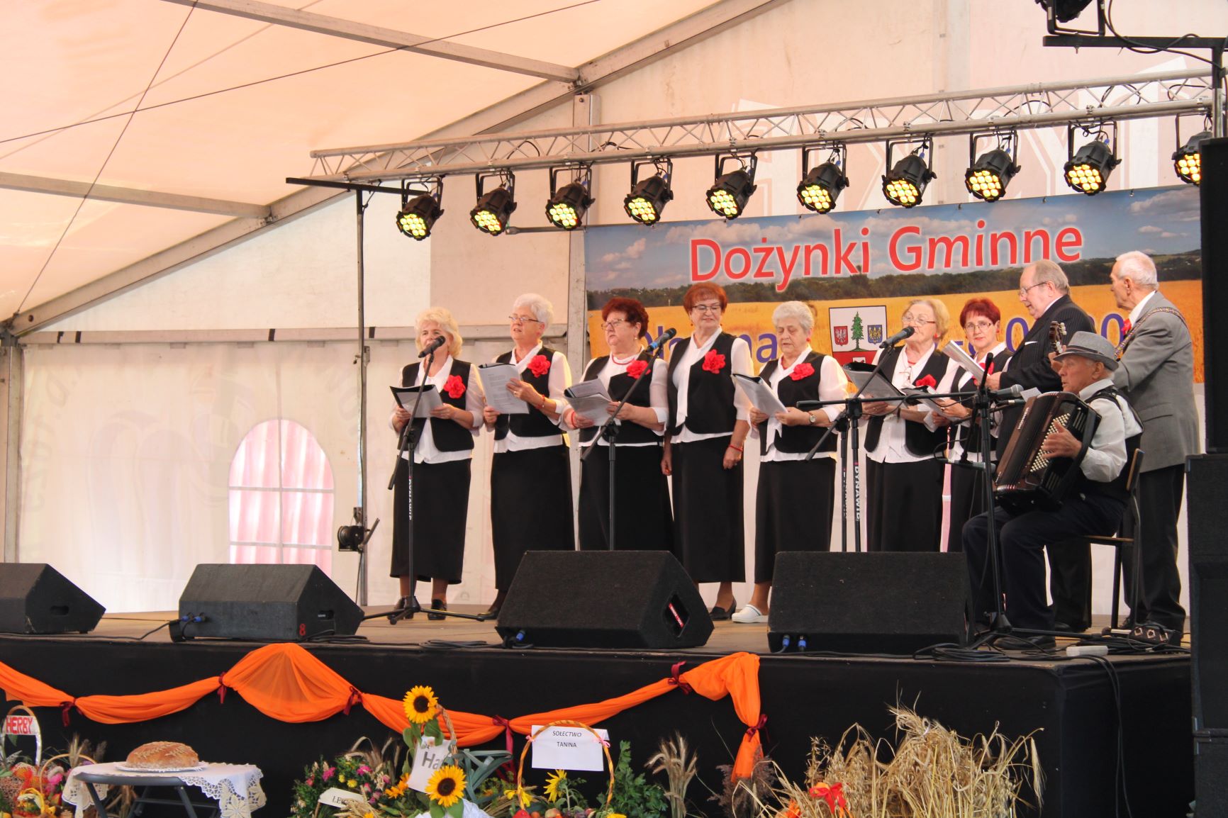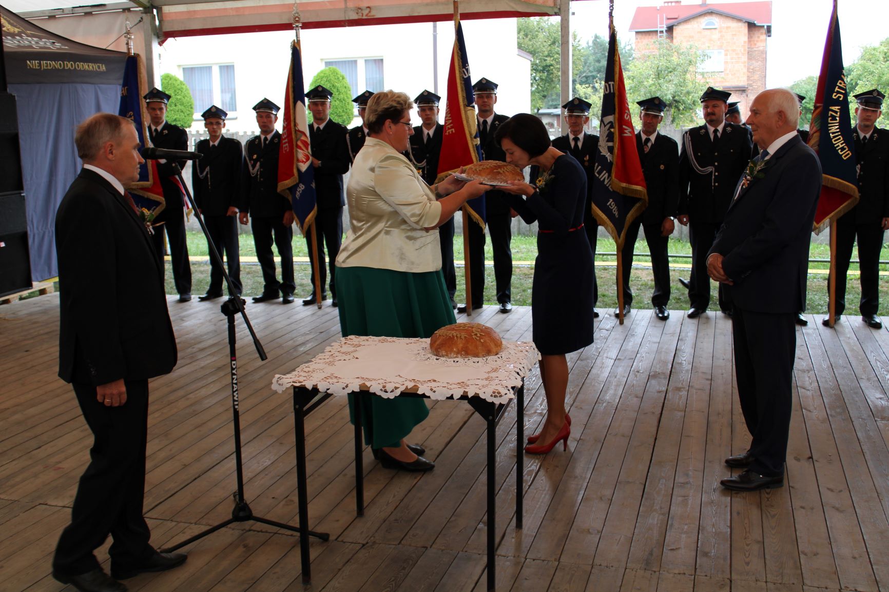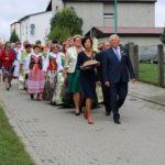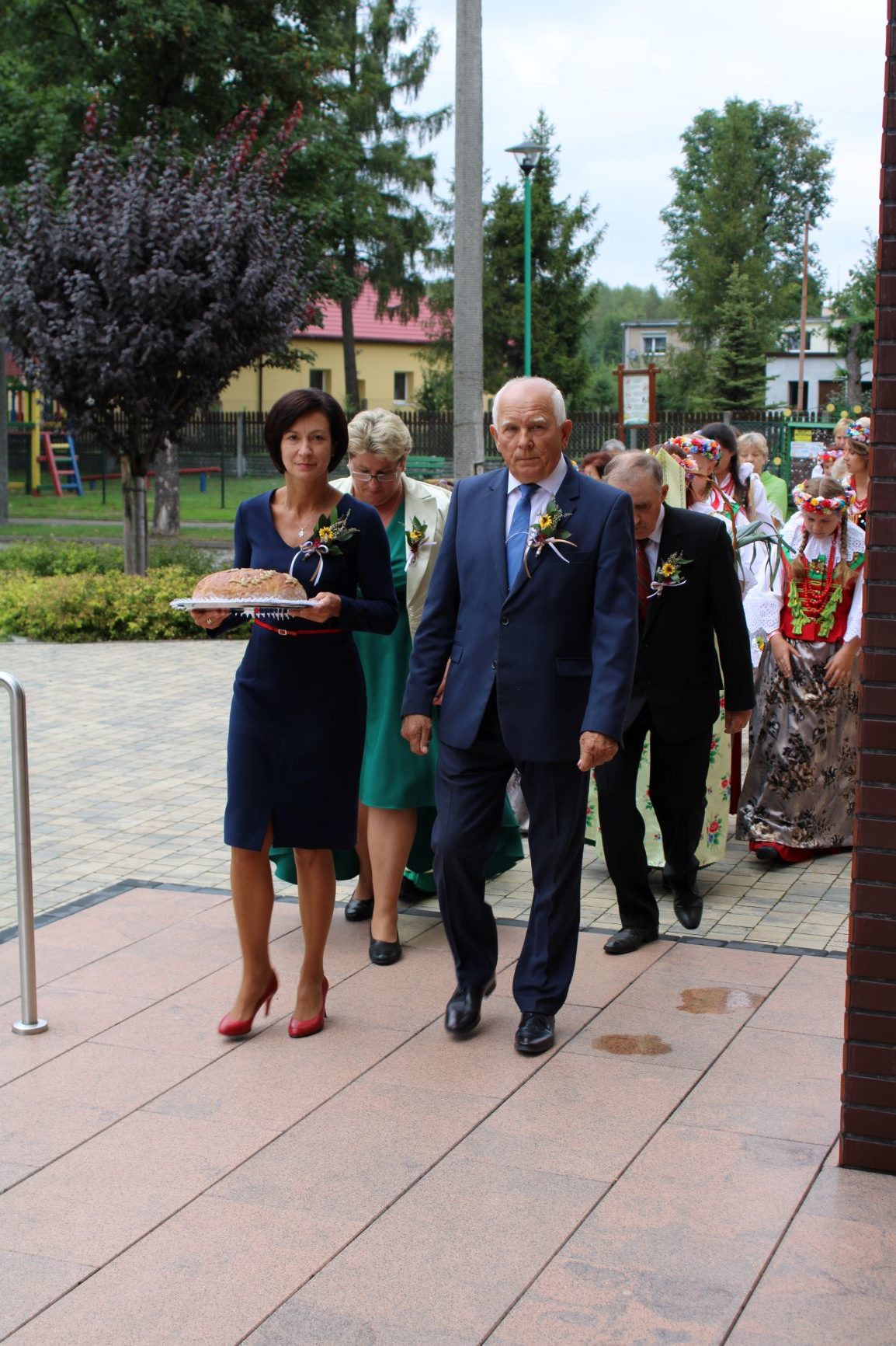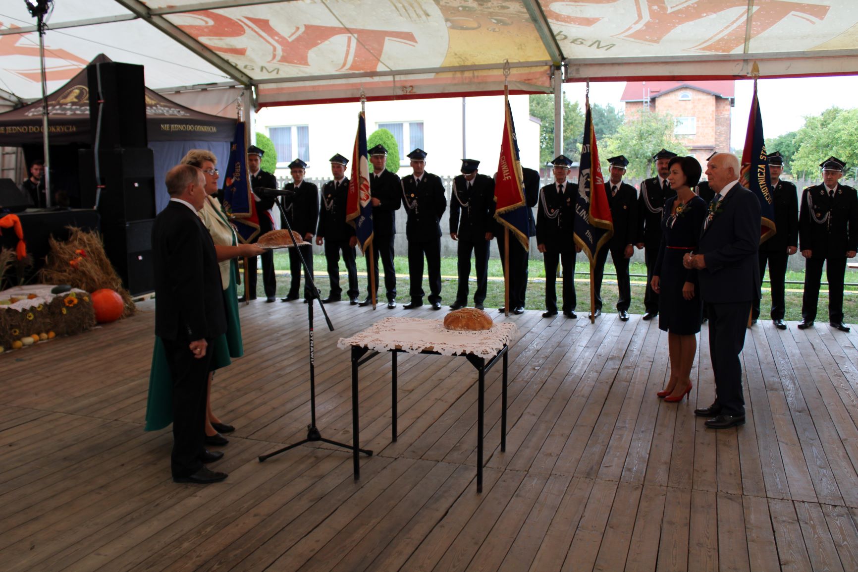W dniu 8  września  uroczystości rozpoczęły się przekazaniem chleba przez Starostów Dożynek w osobach Elżbiety i Lucjana Machoń  na ręce gospodarzy  dożynek Pani Iwony Burek – Wójt Gminy  i p. Józefa Kozielskiego Przewodniczącego Rady Gminy. Barwny korowód na czele z Gospodarzami,  Starostami, pocztami sztandarowymi jednostek ochotniczych straży pożarnych, trójkami sołeckimi i mieszkańcami gminy udał się na Mszę Świętą do kościoła parafialnego w Olszynie, którą odprawili ks. Jarosław Wiśniewski proboszcz parafii w Olszynie i ks. Kazimierz Bartosik -proboszcz parafii w Lisowie.  Po powrocie z kościoła głos zabrała Wójt Gminy, która powitała zaproszonych gości, podziękowała  rolnikom za ich trud i ciężką pracę, życzyła wszystkim radosnego świętowania oraz podziękowała za liczny udział. Tradycyjnie gospodarze Dożynek podzielili poświęcony chleb dożynkowy i poczęstowali przybyłych na dożynki gości i mieszkańców. Następnie rozpoczął się blok artystyczny w którym wystąpiły zespoły „Złota Jesień” i „Lisowianki”; dzieci z Zespołu Szkolno – Przedszkolnego w Olszynie, tancerki z zespołu Grand Seven, mażoretki  „Copacabana” z Ciasnej, orkiestra dęta „Blaskapelle” z Świbia oraz cygański zespół „Vanessa & Sorba” Podsumowaniem uroczystości dożynkowych był  pokaz pirotechniczny, który wzbudził wielkie zainteresowanie uczestników  dożynek gminnych. Wszystkim, którzy przyczynili się do organizacji tak udanej imprezy w szczególności mieszkańcom Sołectwa Olszyna składam serdeczne podziękowania.