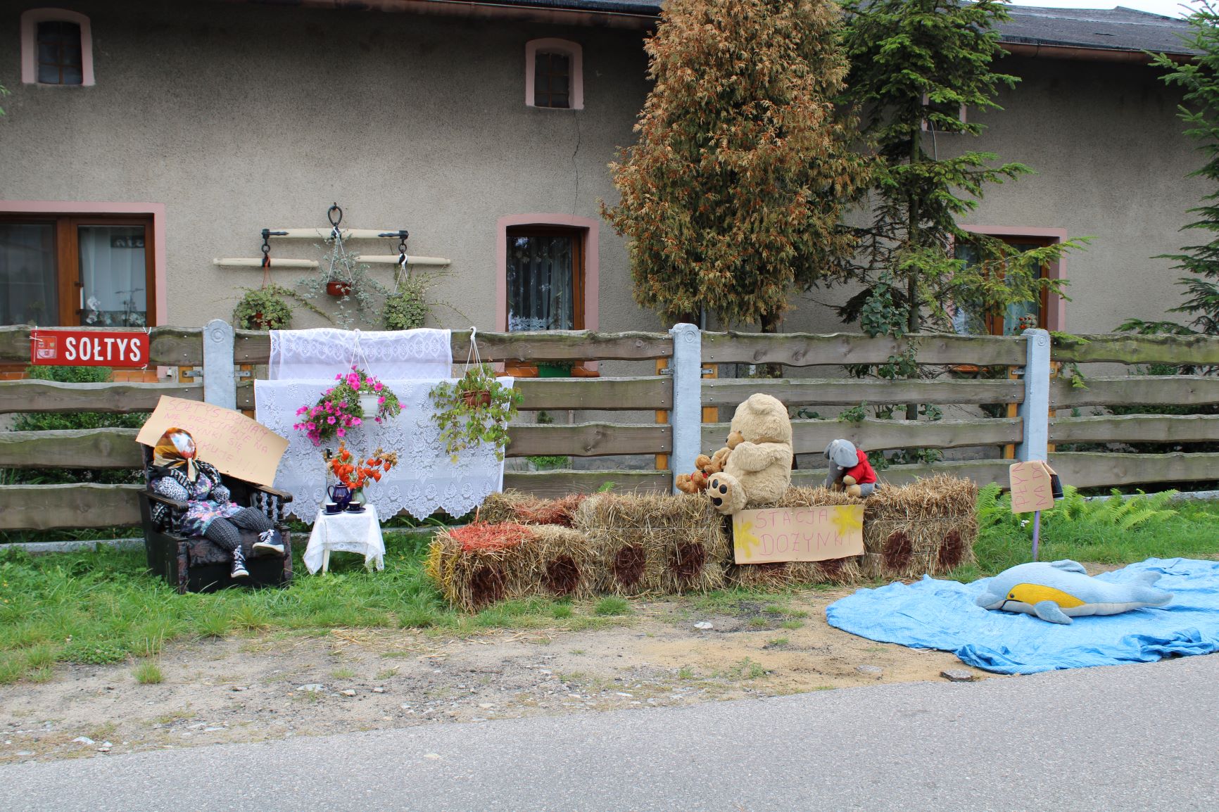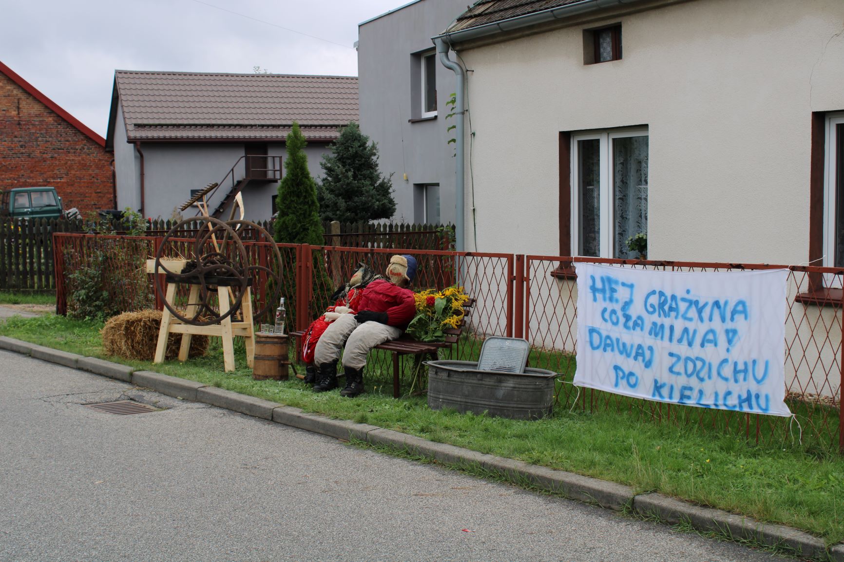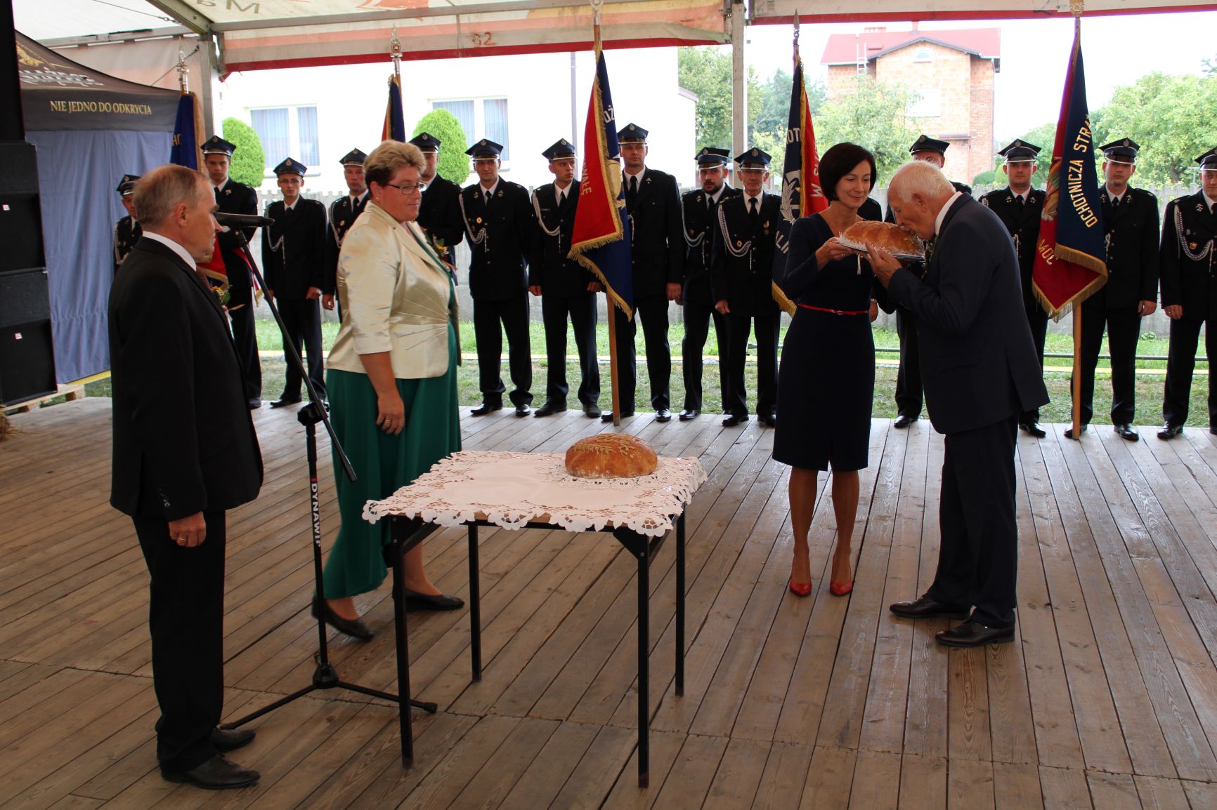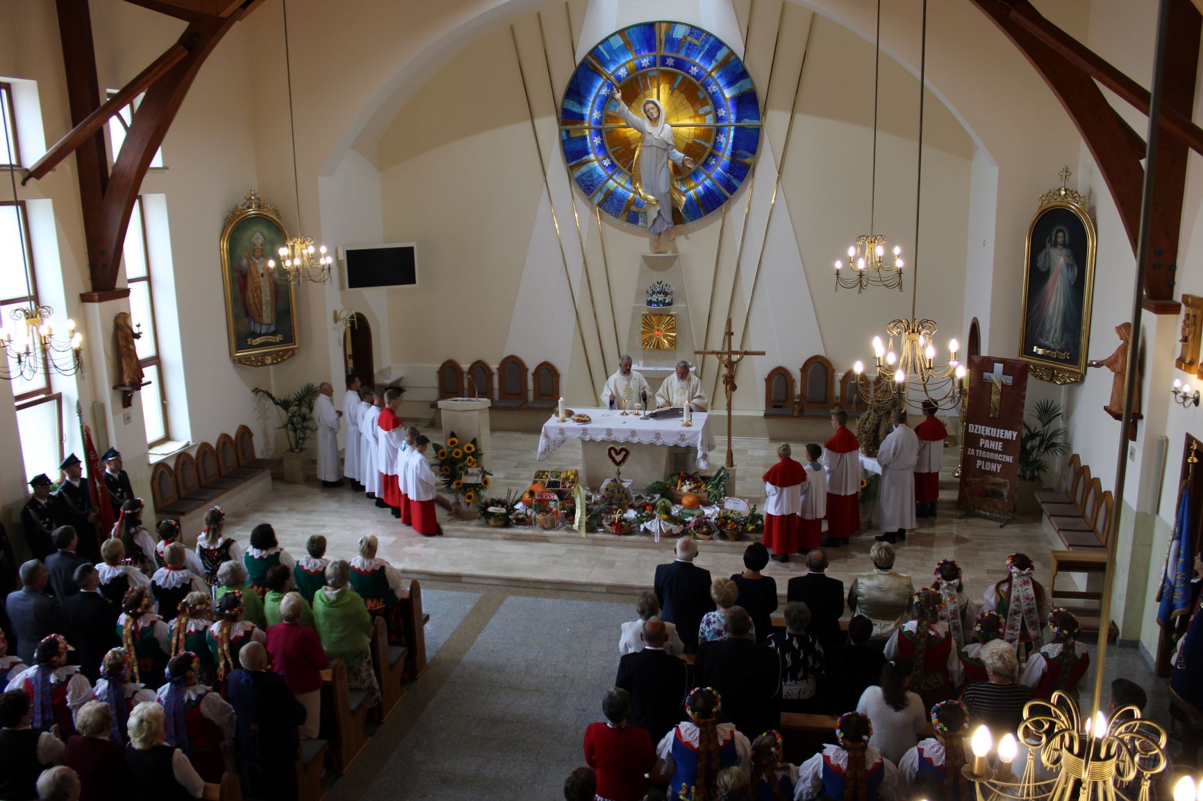 W dniu 8  września  uroczystości rozpoczęły się przekazaniem chleba przez Starostów Dożynek w osobach Elżbiety i Lucjana Machoń  na ręce gospodarzy  dożynek Pani Iwony Burek – Wójt Gminy  i p. Józefa Kozielskiego Przewodniczącego Rady Gminy. Barwny korowód na czele z Gospodarzami,  Starostami, pocztami sztandarowymi jednostek ochotniczych straży pożarnych, trójkami sołeckimi i mieszkańcami gminy udał się na Mszę Świętą do kościoła parafialnego w Olszynie, którą odprawili ks. Jarosław Wiśniewski proboszcz parafii w Olszynie i ks. Kazimierz Bartosik -proboszcz parafii w Lisowie.  Po powrocie z kościoła głos zabrała Wójt Gminy, która powitała zaproszonych gości, podziękowała  rolnikom za ich trud i ciężką pracę, życzyła wszystkim radosnego świętowania oraz podziękowała za liczny udział. Tradycyjnie gospodarze Dożynek podzielili poświęcony chleb dożynkowy i poczęstowali przybyłych na dożynki gości i mieszkańców. Następnie rozpoczął się blok artystyczny w którym wystąpiły zespoły „Złota Jesień” i „Lisowianki”; dzieci z Zespołu Szkolno – Przedszkolnego w Olszynie, tancerki z zespołu Grand Seven, mażoretki  „Copacabana” z Ciasnej, orkiestra dęta „Blaskapelle” z Świbia oraz cygański zespół „Vanessa & Sorba” Podsumowaniem uroczystości dożynkowych był  pokaz pirotechniczny, który wzbudził wielkie zainteresowanie uczestników  dożynek gminnych. Wszystkim, którzy przyczynili się do organizacji tak udanej imprezy w szczególności mieszkańcom Sołectwa Olszyna składam serdeczne podziękowania.