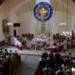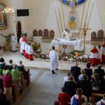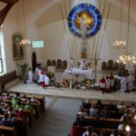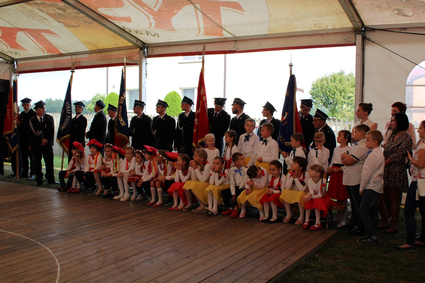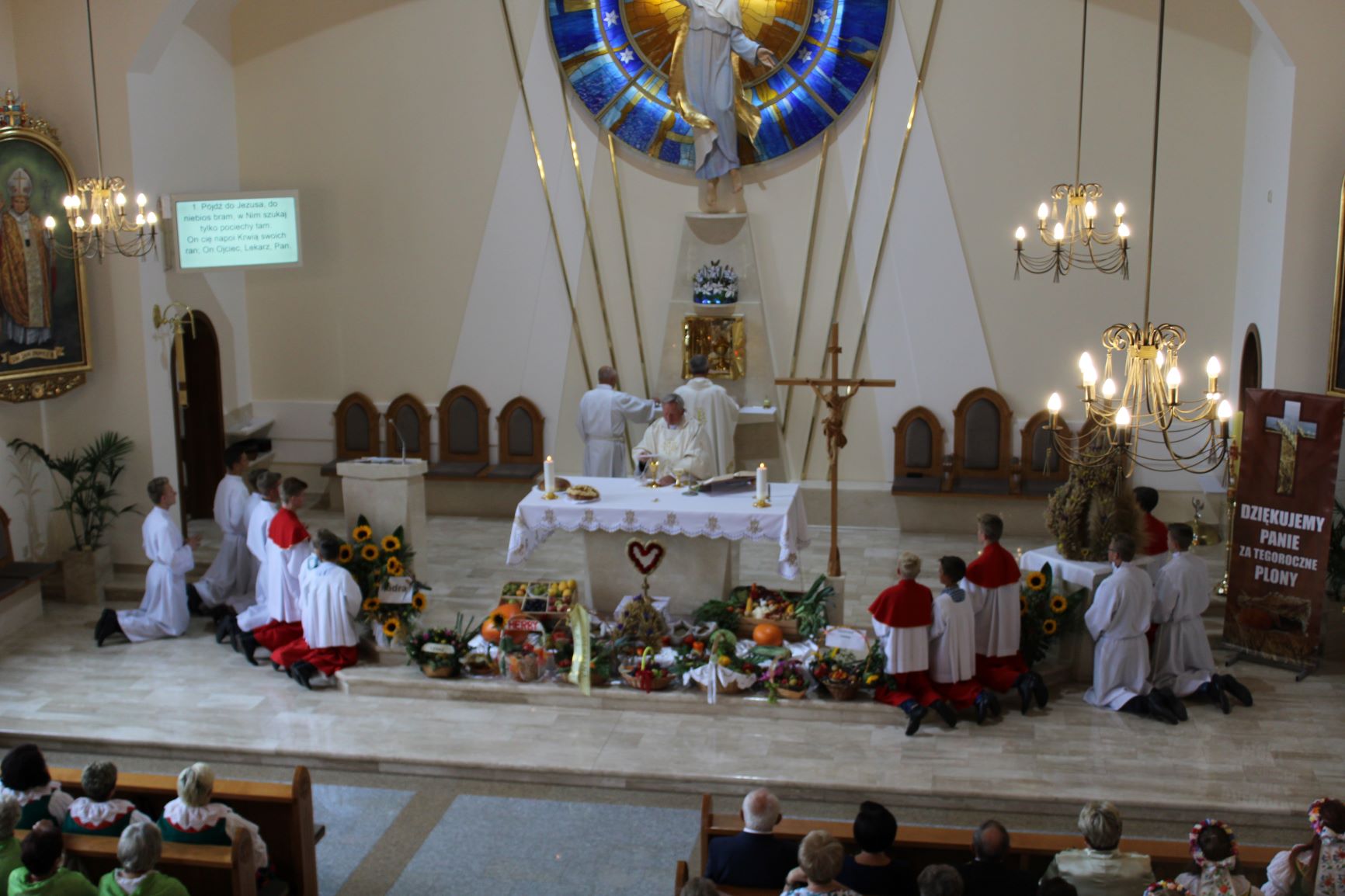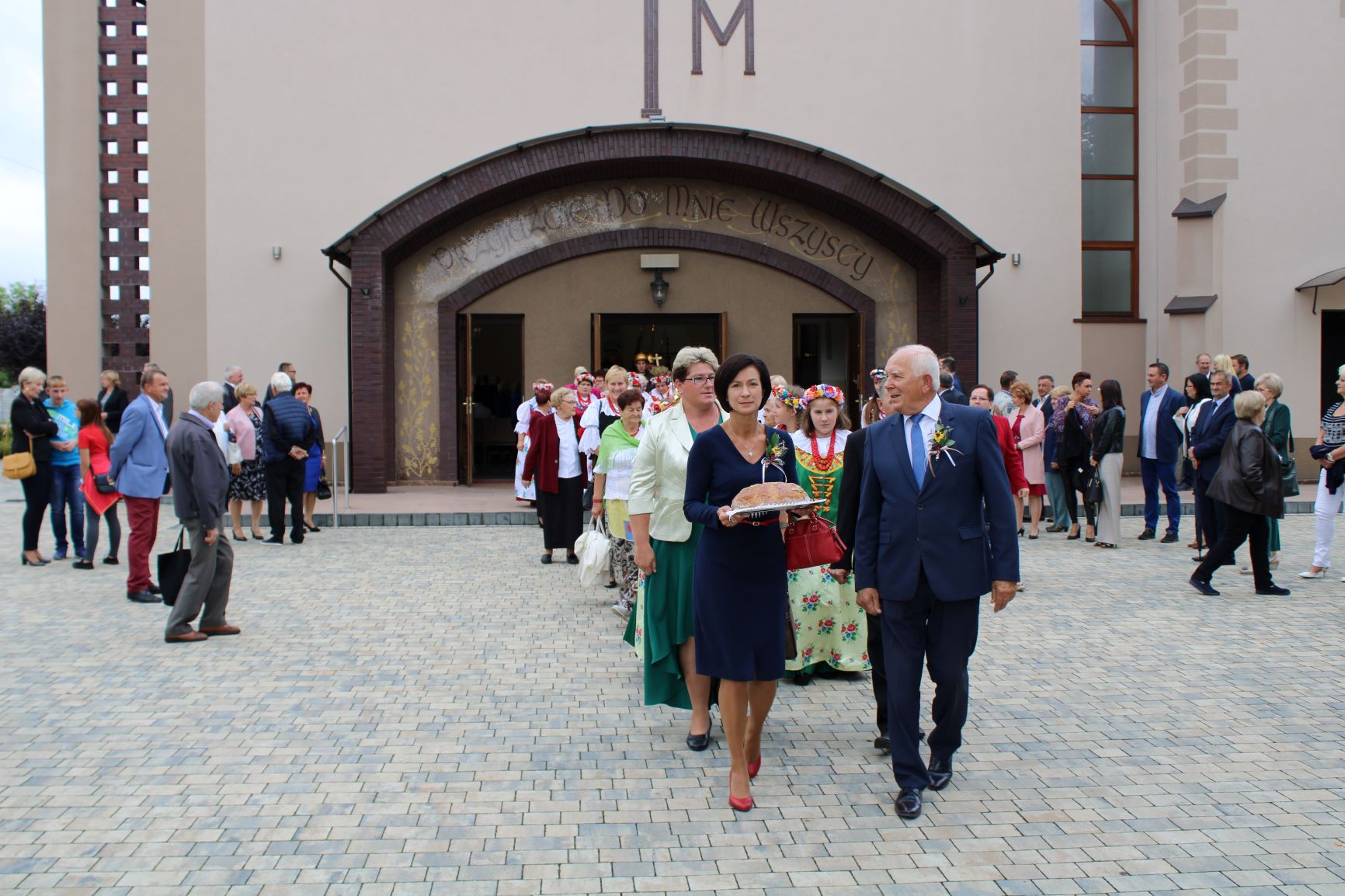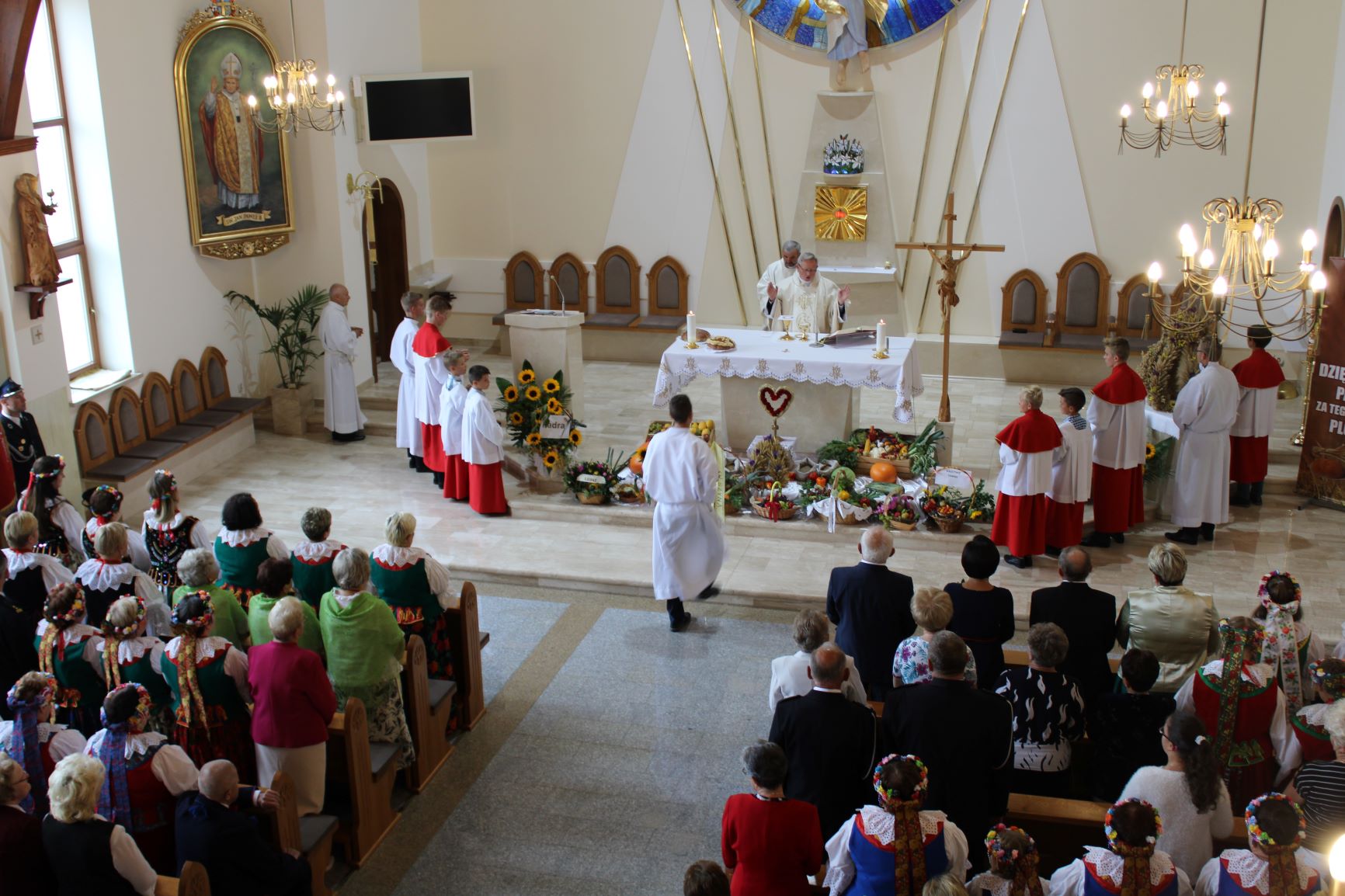 W dniu 8  września  uroczystości rozpoczęły się przekazaniem chleba przez Starostów Dożynek w osobach Elżbiety i Lucjana Machoń  na ręce gospodarzy  dożynek Pani Iwony Burek – Wójt Gminy  i p. Józefa Kozielskiego Przewodniczącego Rady Gminy. Barwny korowód na czele z Gospodarzami,  Starostami, pocztami sztandarowymi jednostek ochotniczych straży pożarnych, trójkami sołeckimi i mieszkańcami gminy udał się na Mszę Świętą do kościoła parafialnego w Olszynie, którą odprawili ks. Jarosław Wiśniewski proboszcz parafii w Olszynie i ks. Kazimierz Bartosik -proboszcz parafii w Lisowie.  Po powrocie z kościoła głos zabrała Wójt Gminy, która powitała zaproszonych gości, podziękowała  rolnikom za ich trud i ciężką pracę, życzyła wszystkim radosnego świętowania oraz podziękowała za liczny udział. Tradycyjnie gospodarze Dożynek podzielili poświęcony chleb dożynkowy i poczęstowali przybyłych na dożynki gości i mieszkańców. Następnie rozpoczął się blok artystyczny w którym wystąpiły zespoły „Złota Jesień” i „Lisowianki”; dzieci z Zespołu Szkolno – Przedszkolnego w Olszynie, tancerki z zespołu Grand Seven, mażoretki  „Copacabana” z Ciasnej, orkiestra dęta „Blaskapelle” z Świbia oraz cygański zespół „Vanessa & Sorba” Podsumowaniem uroczystości dożynkowych był  pokaz pirotechniczny, który wzbudził wielkie zainteresowanie uczestników  dożynek gminnych. Wszystkim, którzy przyczynili się do organizacji tak udanej imprezy w szczególności mieszkańcom Sołectwa Olszyna składam serdeczne podziękowania.