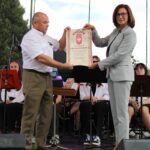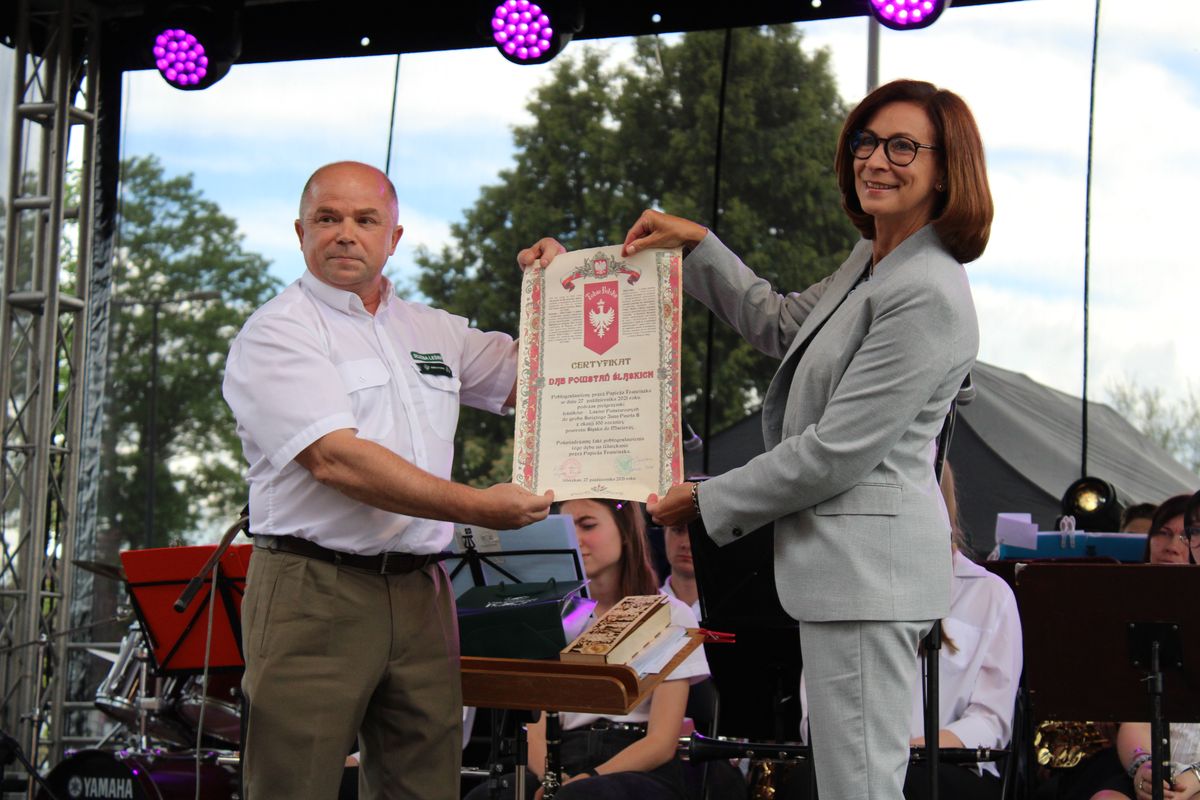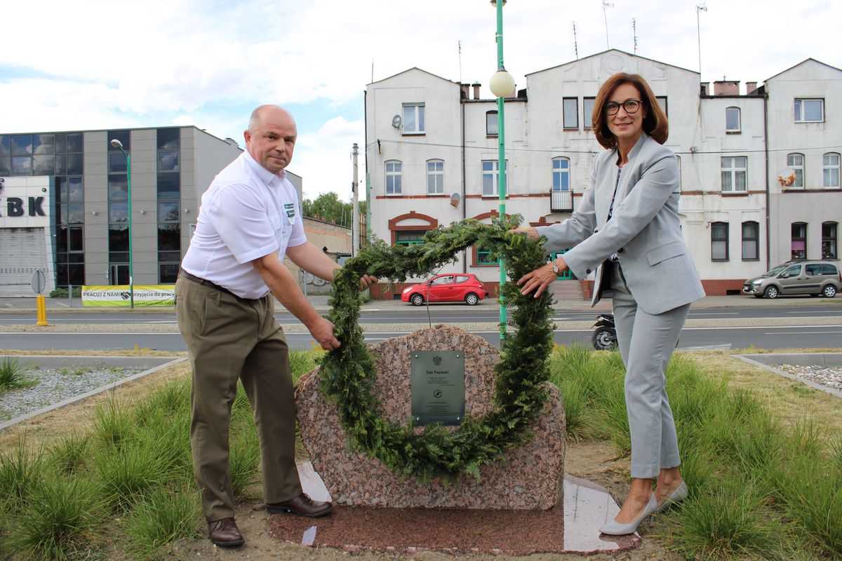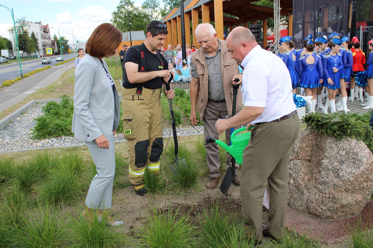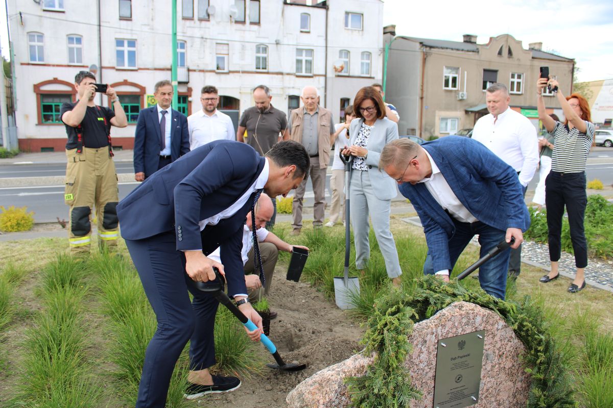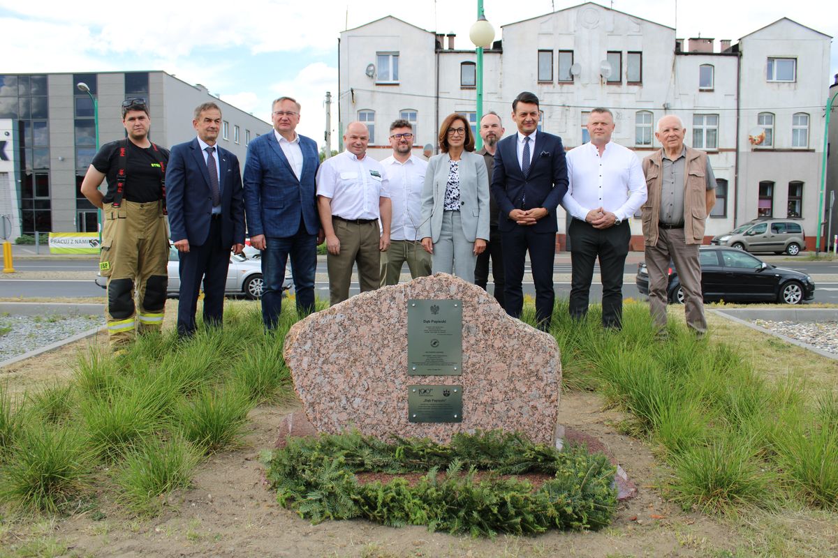 Uroczystości towarzyszyło posadzenie pamiątkowego dębu papieskiego, którego historię wszystkim zgromadzonym przybliżył Nadleśniczy Nadleśnictwa Herby – pan Robert Gorzelak. Na potwierdzenie autentyczności sadzonego drzewa wręczył na ręce pani Wójt certyfikat potwierdzający jego prawdziwość.