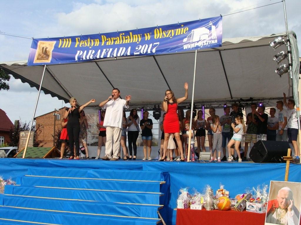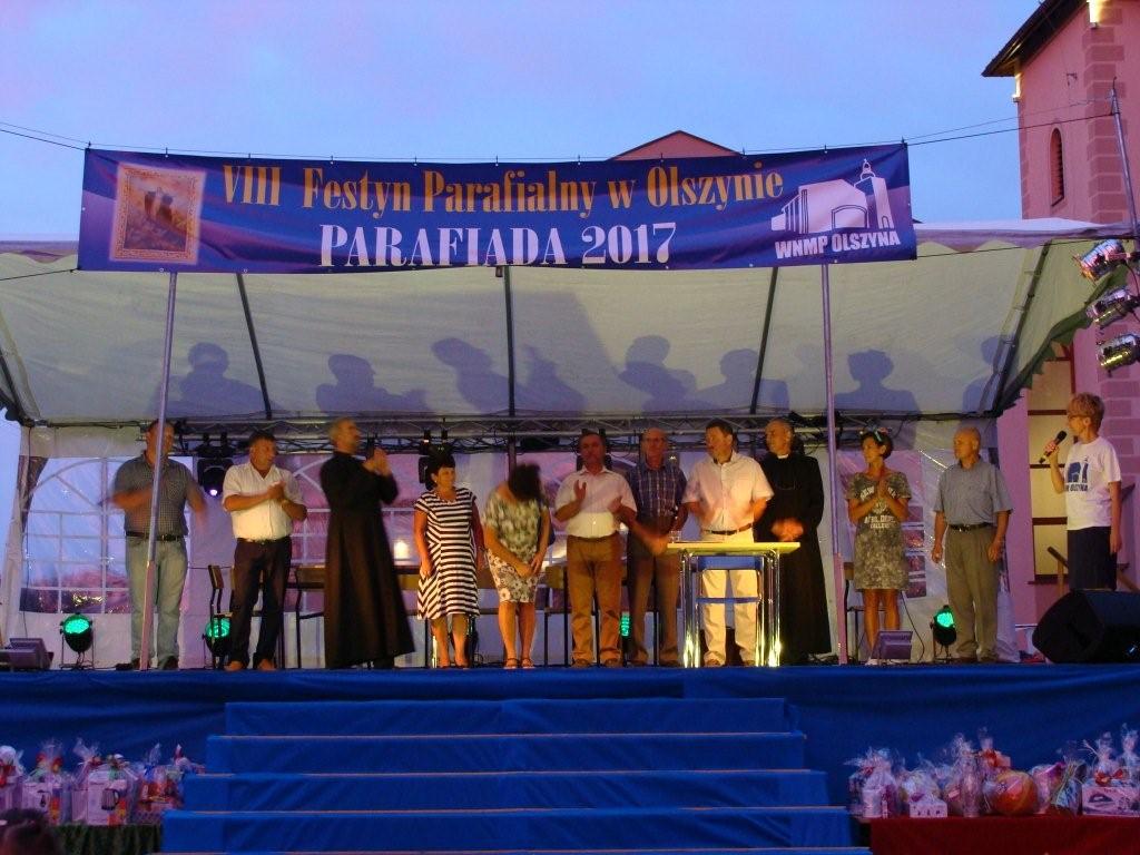 W dniu wczorajszym w sołectwie Olszyna gm. Herby odbyła się 8 Parafiada, która była zorganizowana w celu zbiórki środków na pokrycie kosztów wyposażenia kościoła w Parafii Olszyna. Atrakcji było bardzo dużo. Jak zwykle nie zawiedli mieszkańcy, którzy uświetnili część artystyczną Parafiady swoimi występami. Były tańce Ministrantów i Lektorów, Dzieci Maryi, występ kabaretu „Młode Wilki” z Olszyny oraz występ Rady Parafialnej z udziałem Księdza i Pani Wójt. Wystąpił także kabaret KAFLIKI. Jednak największym aplauzem cieszył się występ taneczny Rady Parafialnej z Księdzem i Panią Wójt w czarno białych strojach. Były również obficie zaopatrzone bufety, dmuchańce dla dzieci, loteria cegiełkowa, makijaż dziecięcy oraz przejazd dorożką. Odbyła się również licytacja przepięknego tortu w kształcie serca.